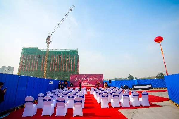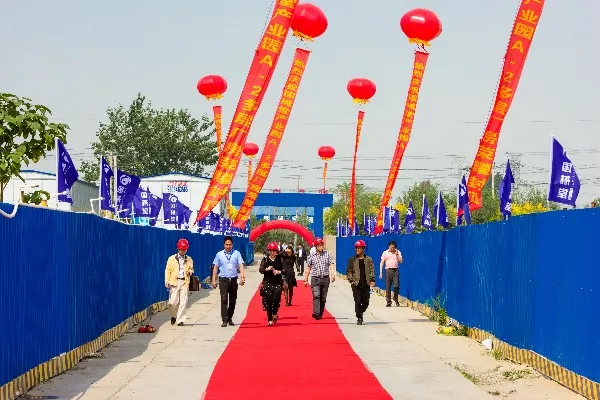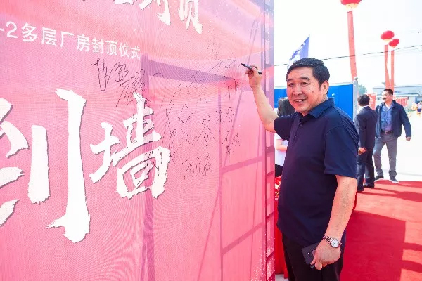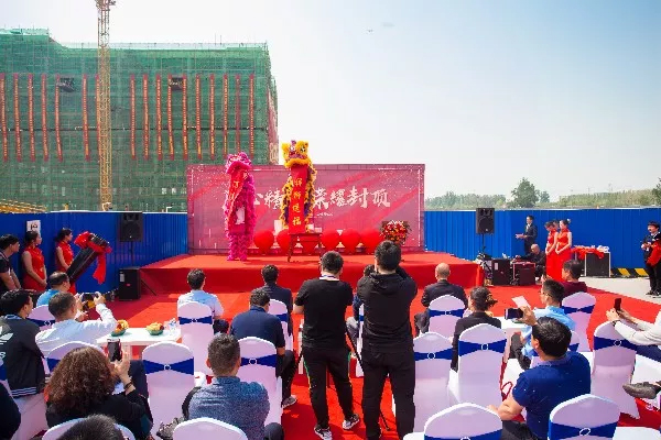 河北国械堂科技有限责任公司总经理孙飞龙先生、石家庄高新区韩通村村委书记、村主任张志显先生、河北省农业银行石家庄科技支行行长董平伟先生、石家庄普尼医疗科技有限公司总经理白军强先生、石家庄新大地建设有限公司副总经理杜彦军先生、河北国械堂科技有限责任公司工程总经理李增民先生和建筑单位、新闻媒体代表及百余名企业家,齐聚一堂,共同见证了A-2多层厂房荣耀封顶这一激动人心的时刻。
