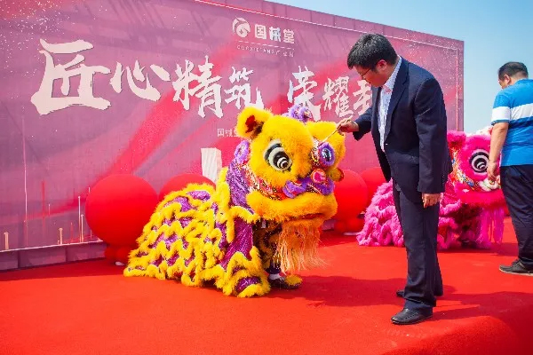 讲话结束后,河北国械堂科技有限责任公司总经理孙飞龙先生携工程总经理李增民先生一起为金狮“点睛”。